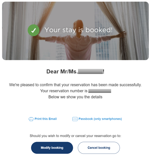 直接ホテルのサイトなどから予約した場合、おそらく予約時にこのようなメールを受け取っている可能性が高いです。