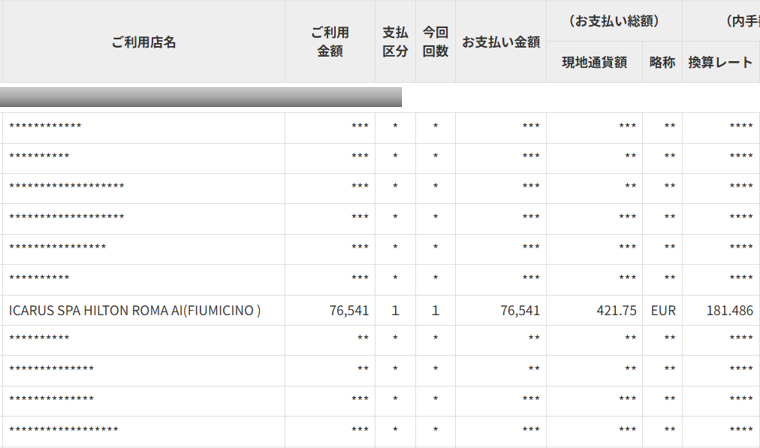 ホテルの予約は現地で支払うことも多いと思うので、100%当てはまるわけではないのですが、予約時点で支払いが行われている場合にはクレジットカードの利用明細で確認が出来ます。