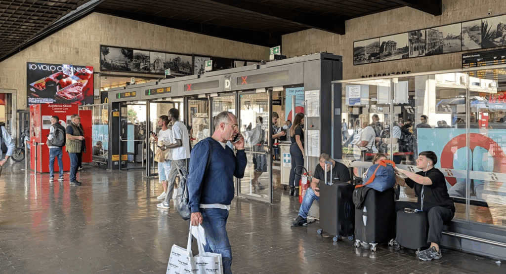 乗車から到着までの流れを簡単に。今回経験したのはヴェネチア・フィレンツェ・ローマの駅。